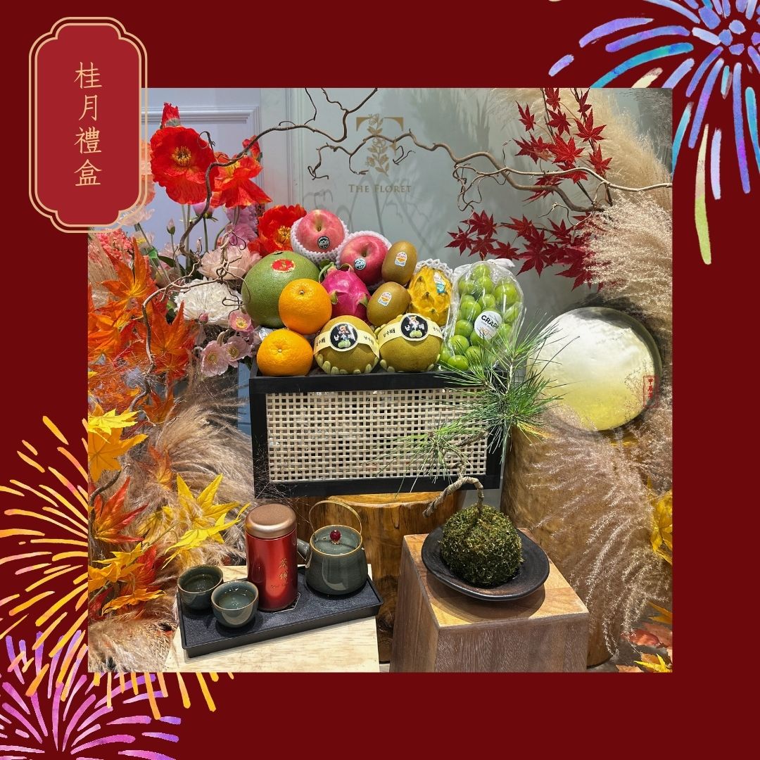 桂月禮盒為本季超值之選,最適合與摯愛親朋分享節日喜悅。盛載多款時令秋季水果及精選茶葉,並隨附 日式苔玉植物與專用托盤,將自然之美與中秋送禮的溫馨完美融合。