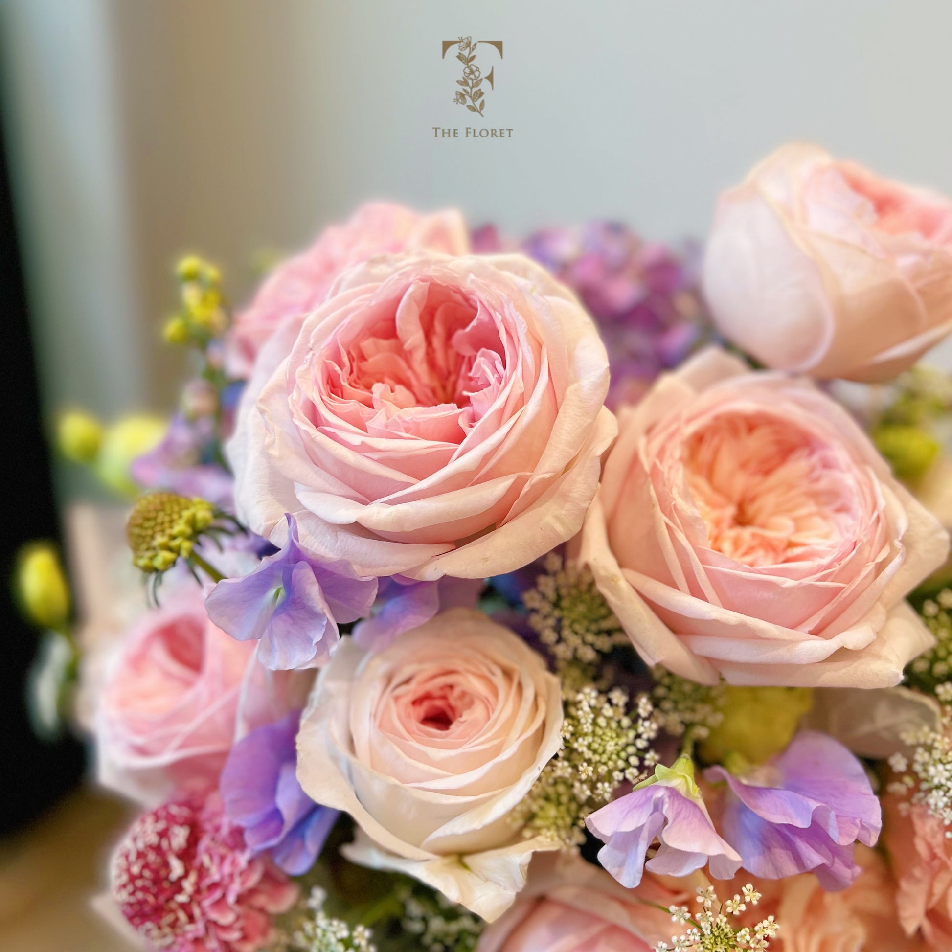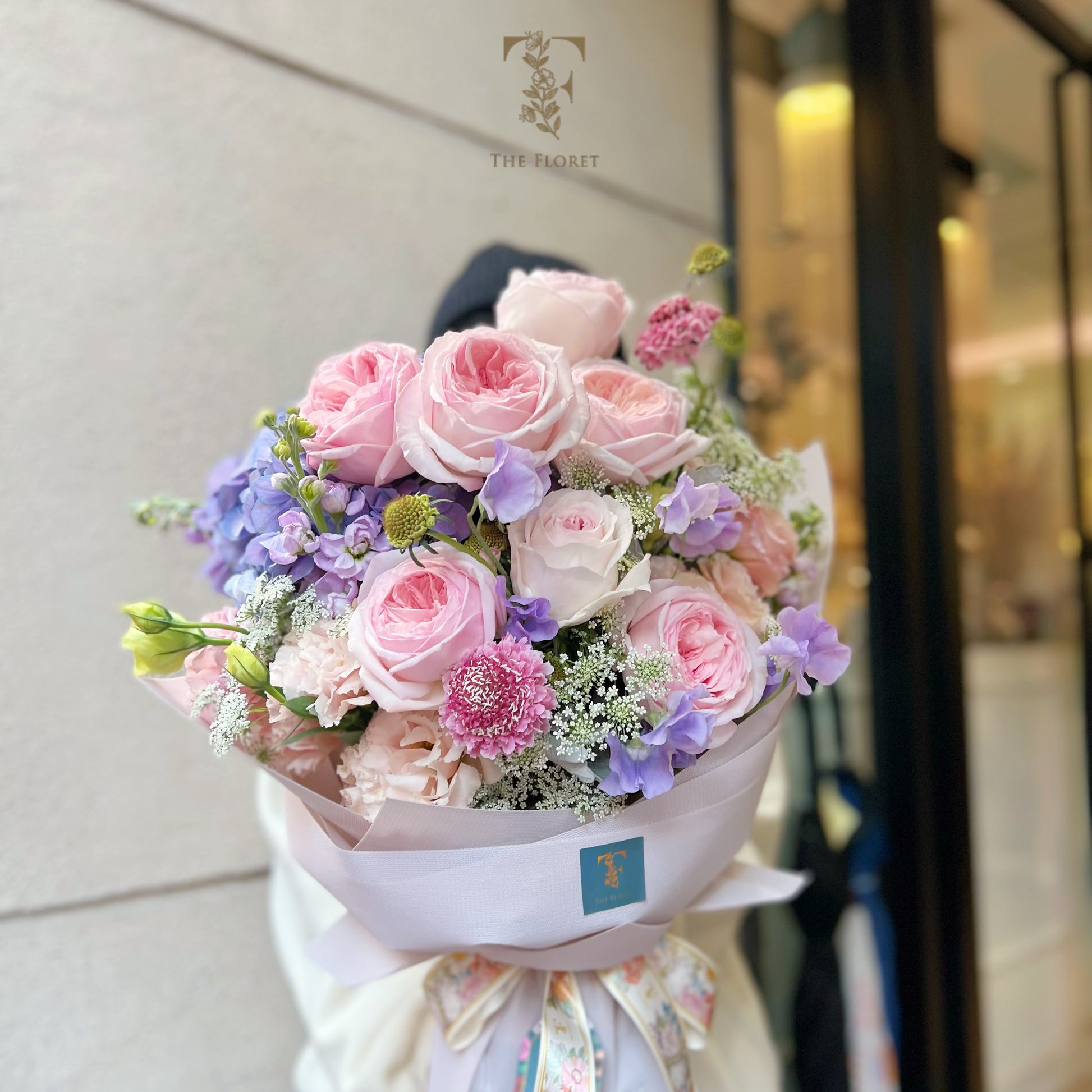 以柔霧奶油粉玫瑰配上淡紫層次與輕盈花材,甜美但不膩、優雅又浪漫;宛如一束「雲朵般」的心意,送給最重要的人最適合。