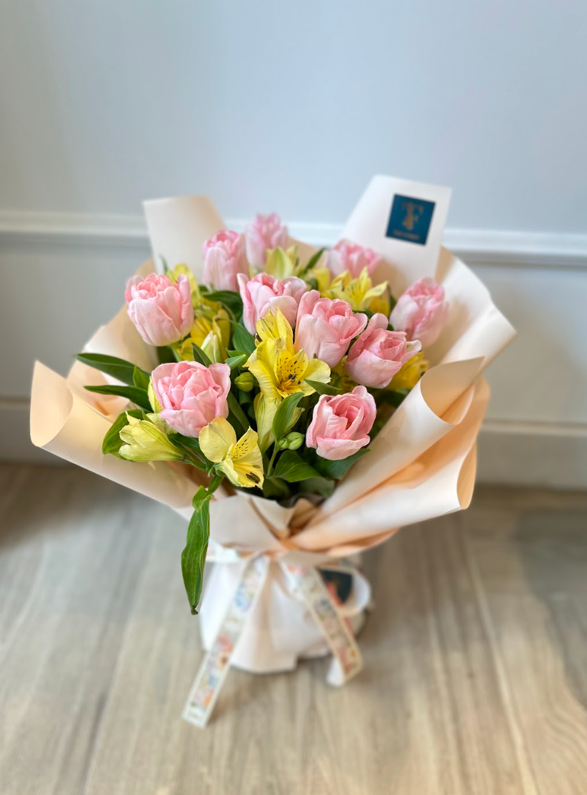 這款花束如微風般輕柔,淡粉與淡黃色調帶來春天的柔美氣息。