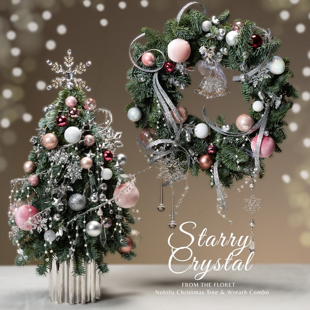 全新 Starry Crystal 系列✨ 以入口 Nobilis(貴族松)人手製作,配上水晶感閃爍、冷調銀色、珍珠鏈與霧面球,散發高雅星光氣息。花環可掛門口或牆身,細樹放於餐枱、玄關或任何小角落;同時擺設,更顯和諧完整的節日氛圍。